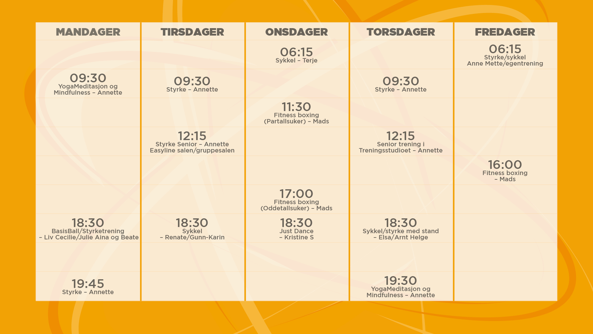 Her er oversikt over timene våre i høst - følg vår Facebookside for eventuelle endringer og pop-up-timer.